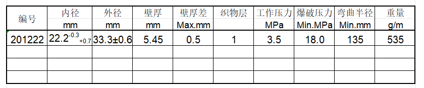 粘结力:内胶层-屏蔽层-中胶层:Min.16N/cm或胶料扯断或无法分离增强层-外胶层:Min.10N/cm