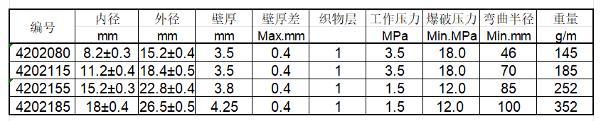 粘结力:内胶层-屏蔽层-中胶层:Min.16N/cm或胶料扯断或无法分离增强层-外胶层:Min.10N/cm