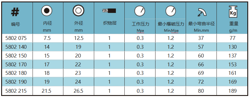 特点:比同规格EPDM管重量轻